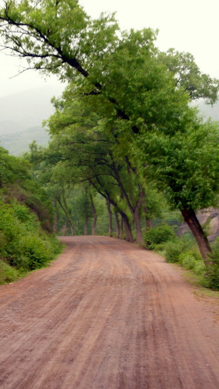 沿着蛤蟆沟、梨树沟的红泥土路到达G112上的蒋家堡